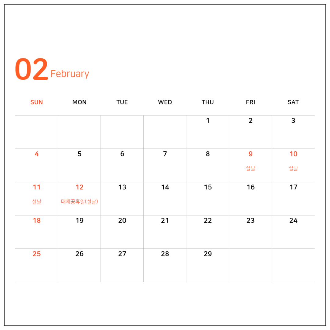 - 2월 12(월) - 설 연휴 대체공휴일